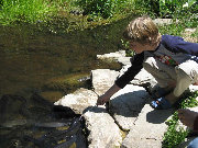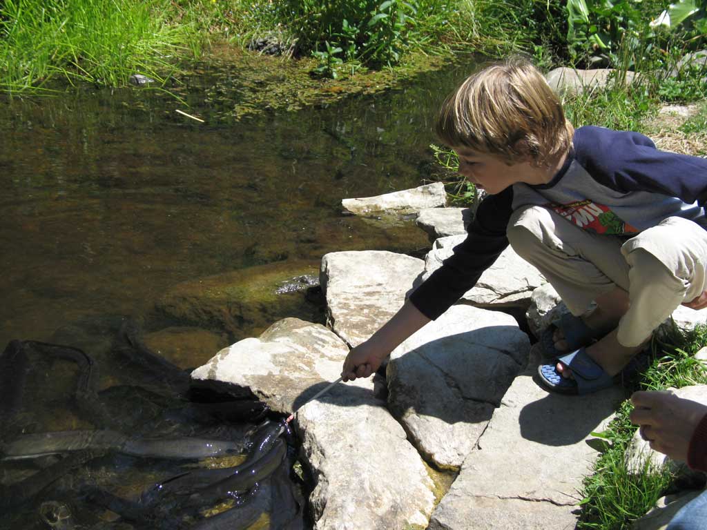 Week 4: On to the Nelson area, which was very enjoyable now that the house hunt was over. We visited the Nelson Market and the Motueka A & P Show, which is similar to a county fair back in the USA. We explored the local beaches where Zane caught about 50 waves on his boogie board. The weather was mostly fine with one morning of "thundery heavy falls" which was quite entertaining. Here Zane feeds the tame eels at the Jester Cafe.