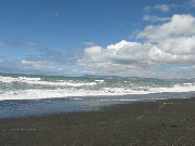 Week 3: We examined MANY houses, looking for that perfect "character" house (privacy, room for sheep). We did not find it, but did find the beach community of Rarangi, about 1/2-way between Blenheim and Picton. We visited the school, talked with some residents, and got a good feeling about it. We put in an offer on a house there - it was accepted! Glenn is happy - right across the street from the Golf Course. If all goes to plan we will be in before Christmas. Plenty of room for guests -make your travel plans now. Here's the beach there on a blustery day.