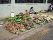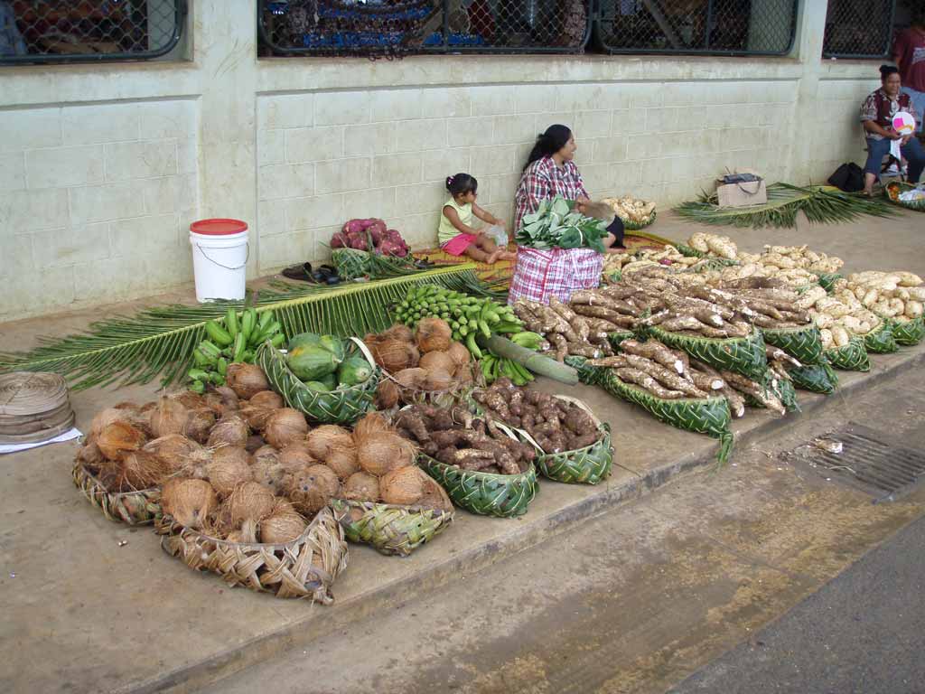 We arrived in Vava'u and had a day before the departure of our Kayak trip. We visited the market in the town of Neaifu. Here is a typical display of produce: (left to right) coconuts, papayas, sweet potatoes, bananas, taro, and yams. The baskets are woven in the fields from coconut palm fronds and are often discarded after one use.