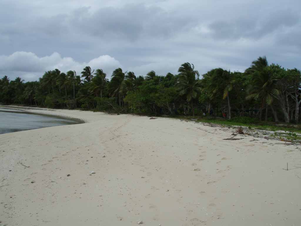 Here is our campsite, located on a low section in the center of an island. We spent two nights here as the wind continued to blow steadily and the swell made paddling unattractive. Also it rained. We did some exploring, snorkelling, reading, eating coconuts and tree climbing to pass the time. All in all, not a bad place to pass a day or two.