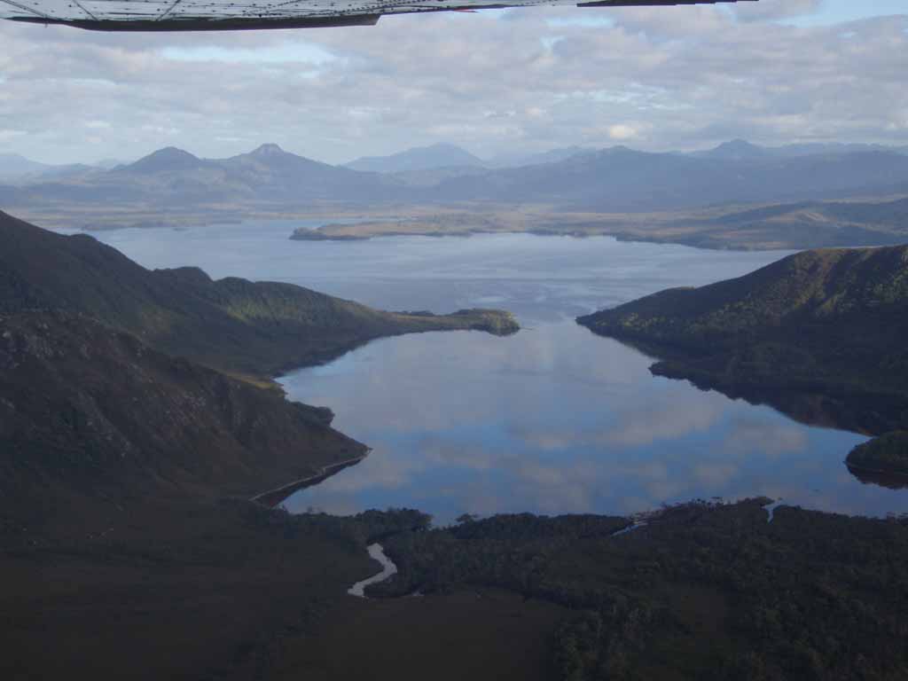 Here's a view of Bathurst Harbour, or at least part of it, from the air. Very open, scenic country, not many trees to clutter up the view.