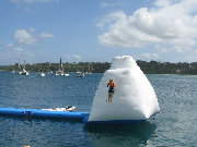 Port Vila has a wide range of touristy activites to keep the visitors happy, from helicopter tours to "priate" ships, to hair braiding. Zane enjoyed this harborside water park. Mom and Dad enjoyed watching.