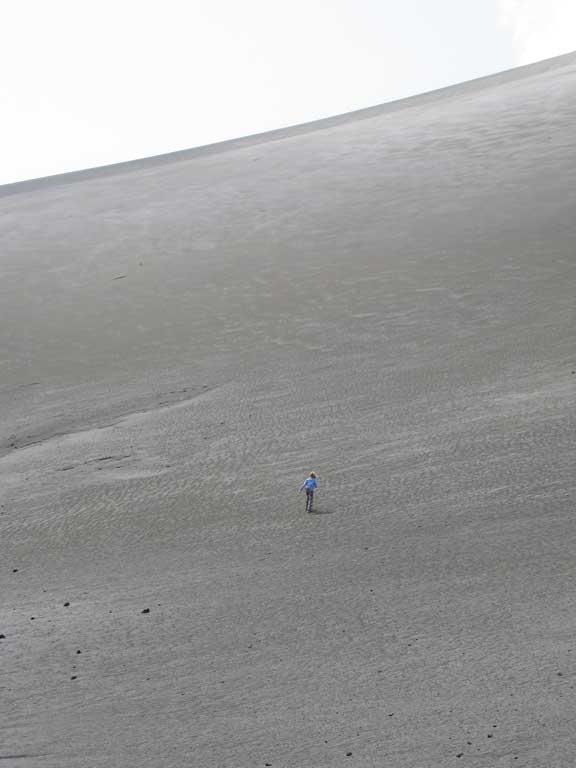 As all things, our visit to the volcano came to an end. We had an eventful ride back across the island. Here Zane plays on the ash side of the volcano while other members of our truck's party were filming a music video (I kid you not).