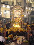 Throught Bangkok, and everywhere else in Thailand, are shrines of various sizes that people stop by to light some incense, say a prayer, and perhaps leave an offering. Erawan Shrine, shown here, is probably the most elaborate and crowded of all the shrines we saw. It seemed to be packed day and night, and supported a small street economy of vendors selling offerings.
