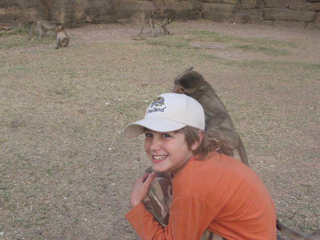 The monkeys are quite inquisitive and eager to investigate. This one is quite interested in trying to remove the button from the top of Zane's hat. Tana lost a map and some chapstick to monkeys. A curious youngster jumped on Zane, which was not to his mother's liking. She proceeded over and nipped him on the leg. Then it was off to the clinic for the requisite rabies vaccine. Sure it's funny, till someone gets hurt!