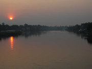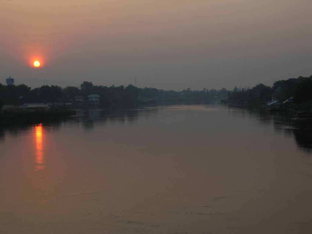Sunrise over the River Kwai. Everywhere we went in Thailand the sunrises and sunsets were quite pretty, owing to the horrible air quality.