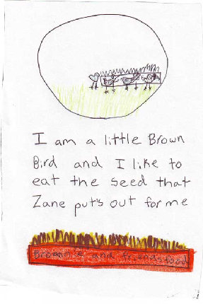 I am a little brown bird and I like to eat the seed that Zane puts out for me.