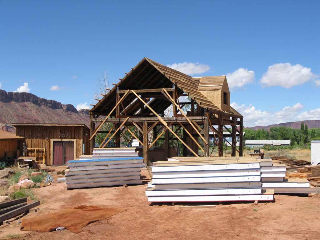 The dormer has been put up, and the structural insulated panels (SIPS) that will be the outside walls have arrived.