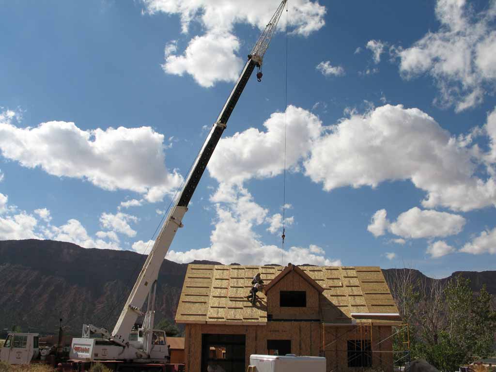 Walls are going up! Here the crew lifts the top piece into the west wall.