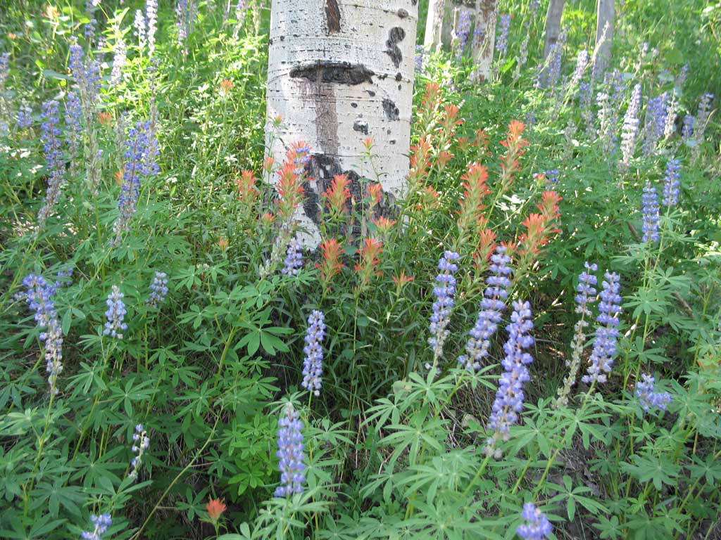 Near our first campsite there was a nice aspen forest, the Indian Paintbrush and Lupine still in bloom.