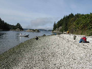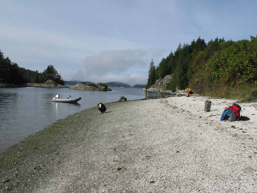 We visited a couple of native settlement sites which are now abandoned. The white beaches are middens, or trash heaps which were built up over the course of thousands of years. They are mostly composed of crushed clamshells, but contain bits and pieces of many interesting things, both old and modern. In this case we really enjoyed poking around in other people's trash.