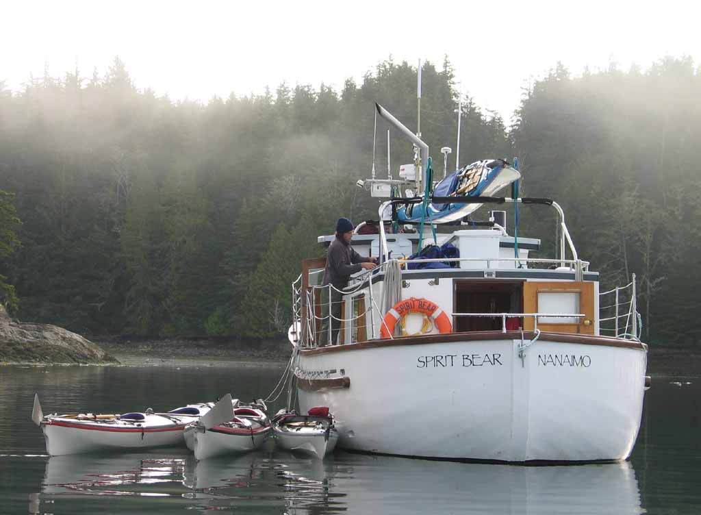 The Sprirt Bear was our mothership for the week as we explored the many islands, channels, and sounds of the area known as the Broughton Archipelago. It had all the comforts of home and made a fine base for jaunts with the kayaks or Zodiac, and we thought it was quite handsome to boot.
