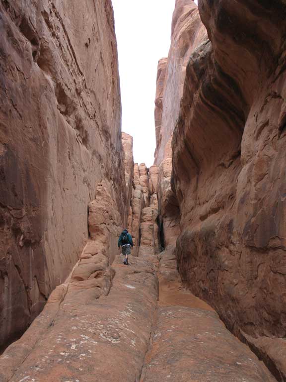 Tana explores a narrow section of Mary Jane Canyon. This terrific and unknown spot is just a few miles from our place in Castle Valley.