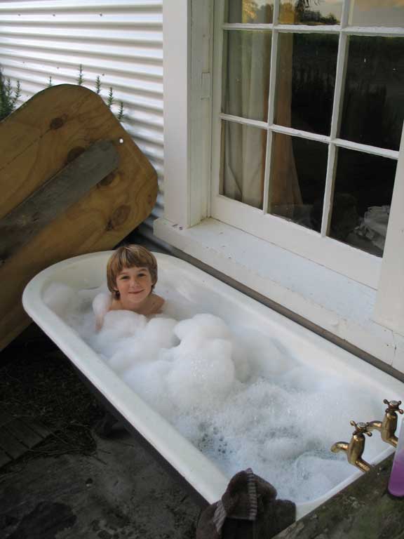 Week 2: We continued to move south, stopping a night in Martinborough, a lovely little wine village. Then it was on to Wellington, the capital. In our experience the weather there is always horrible. We spent a good afternoon at Te Papa, the national museum. We left on the ferry, crossing the Cook Strait to the South Island. The ride was not too rough and quite nice. Next stop was Blenheim, in the heart of the Marlborough wine region. Here our housing search shifted into high gear. Zane enjoyed the outdoor bath at St. Leonard's farm stay.