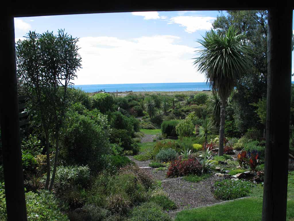 Week 6: We are now settled at our place in Rarangi. Here is a view looking out the living room, over the garden towards Cook Strait. Is that water blue or what? The gardens are amazing, with a huge variety of plants, most of which we do not recognize. We are hoping to be able to keep most of it alive.