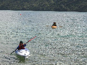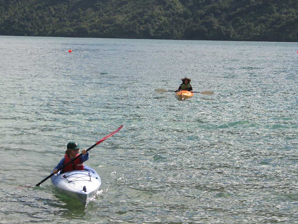 Zane and Tana get in a little paddling at Punga Cove in Queen Charlotte Sound.
