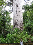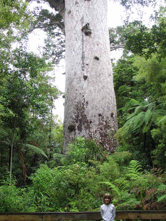The Waipoua Kauri Forest is a great place to visit. The Kauri is the second largest treein the world, (as measured by volume) with only the Giant Sequoia. These magnificent trees were logged extensively in the late 1800's and early 1900's, and formed a significant part of the economy and character of New Zealand during these times. There are very few large trees left. Although it is impossible to convey in a photo the size of these things, here is Zane in front of "Tane Mahuta" or God of the Forest, the largest living Kauri.