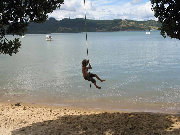 In between downpours at Rawene we got in some swimming at the local beach. Although the water down at the wharf was teeming with jellyfish there were ony a couple at the swimming beach and they did not cause us any trouble.