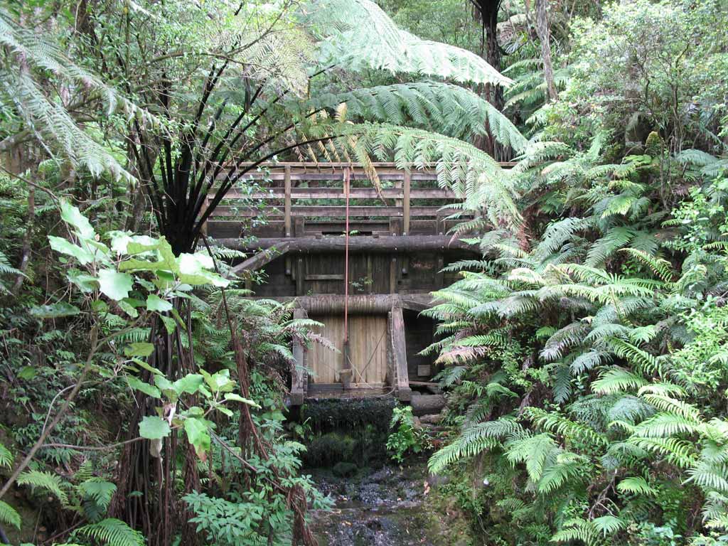 As you may imagine, it was quite difficult to transport these huge trees to the mill once they were felled. Using some good old fahioned Kiwi Ingenuity, the loggers built wooden dams. They stacked up the logs behind the dams and closed the gates. When enough water was backed up the opened the dams, unleashing a flood of water and massive logs that eventually made it down to the mill.