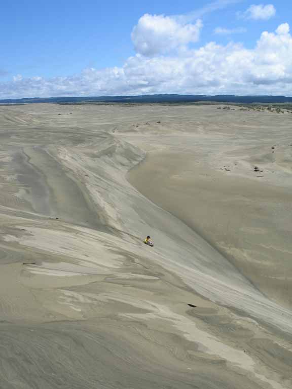 Our final stop was Dargaville, once a bustling lumber port near the entrance of the Kaipara Harbor, the largest harbor in the southern hemisphere. We took a tour out on Ripiro Beach on the West Coast, which is a stunning 100km long. Over 150 shipwrecks have been found here, dating back to 1561. The contantly changing sand hides and reveals secrets. The dunes are massive and beautiful. Good for butt-sliding too as Zane demonstrates.
