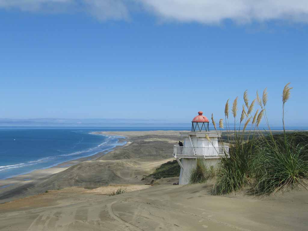 The Kaipara lighthouse at Pouto Point was built in 1884 (of Kauri, of course) to aid in navigation into the Kaipara Harbor. The shifting sands since then have advanced on the lighthouse.