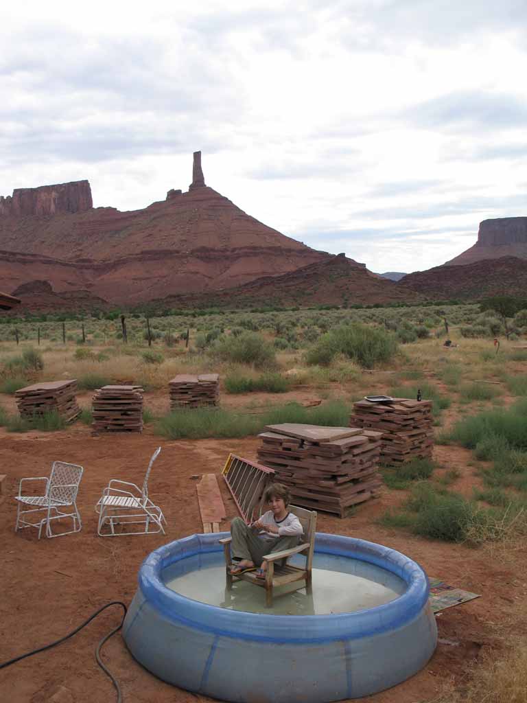 And it was hot, which we enjoyed. We also enjoyed cooling off. Here Zane occupies one of his favorite spots for just such an activity.