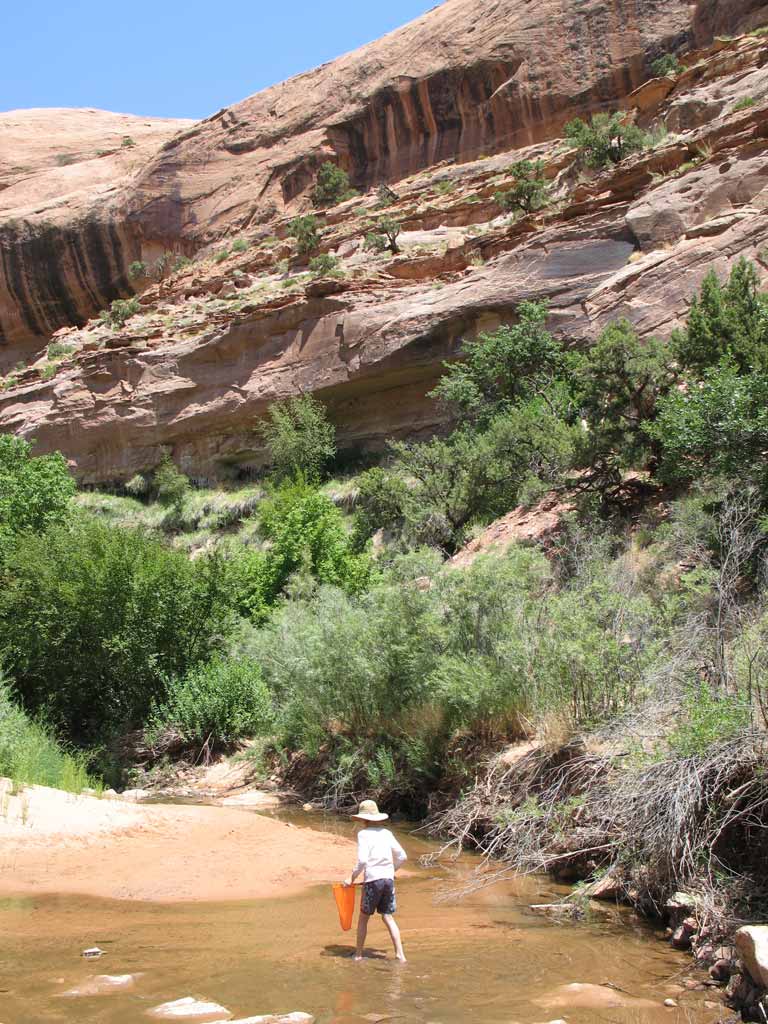 We did manage a few outings, mostly sticking close to the water. During a visit to Negro Bill canyon Zane is off on a crawfish hunt. This year there were also some beaver in the creek, judging from all the freshly chewed branches, although we did not see any actual beavers.