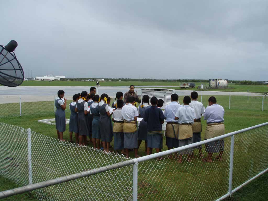 After a few days in Tongatapu we headed to the airport for our flight to Vava'u island. While waiting at the airport (domestic flights proved to be difficult to catch - just what does "confirmed reservation" really mean, anyway?) we saw this school class trip to visit the airport weather station. Note the uniforms. They boys are wearing the traditional ta'ovala, or waistmats.
