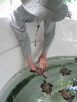 We're not sure where this ranks on the range of turtle conservation practice, but it sure was fun to play with the little turtles! Local eggs are hatched and the turtles are raised until they are about 1 year old, hoping to improve the survival rate of the hatchlings. In the wild perhaps 1-3 of 100 will reach adulthood.