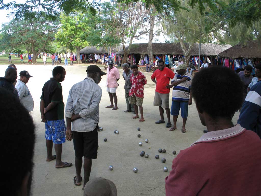 Back in the day New Hebrides was co-managed by the French and English. They called this system the condominium - the natives called it pandemonium. Not sure if it is true, but I read that the French drove on the right side of the road, the English on the left. We thank the French for their influence as the food was fantastic. As well as the food, they left behing the language, which is still widely spoken, as well as the game of Petanque. These fellows found a good way to spend their lunch hour.