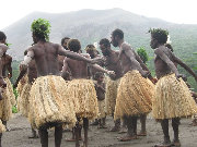 On the morning between volcano jaunts, we walked to the local "kastom" (or traditional) village. Our guide had his cell phone along so we knew we'd be safe. It was a little strange having a couple dozen of the villagers dancing like crazy for the three of us, but they got the ground shaking pretty well and we certainly were entertained.