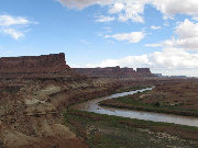 The lower portion of the Green River flows through some of the more remote and spectacular areas of the continental United States. Here is the downriver view from above Fort Bottom, where a prehistoric fort provided the residents with an excellent defensive position. The climb up here seemed much tougher than our last visit 12 years ago - I am sure this has nothing to do with our advancing age!