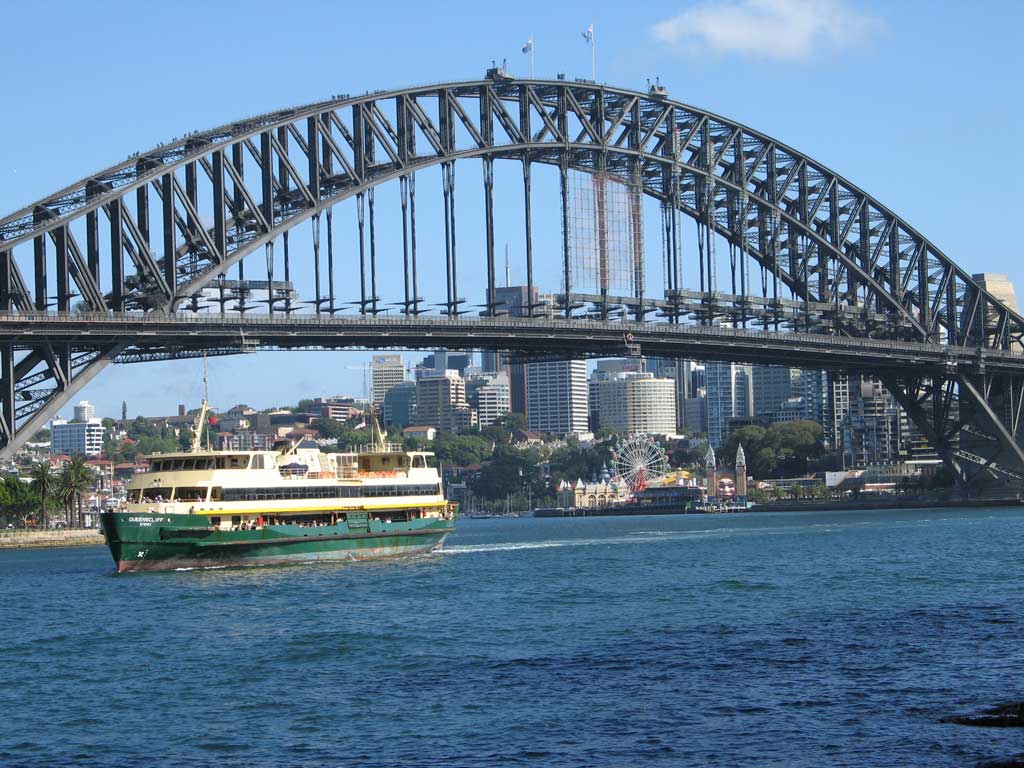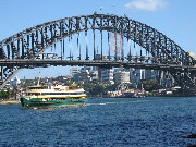 Next to the Opera House, the Sydney Harbour Bridge is the most famous landmark in Sydney Harbour. We enjoyed wathcing the ferry and other boat traffic go under the bridge, and walking on the deck of the bridge for a great view. You may notice some small specks on top of the bridge above the ferry boat. These are people climbing to the top of the bridge. We did not do this!