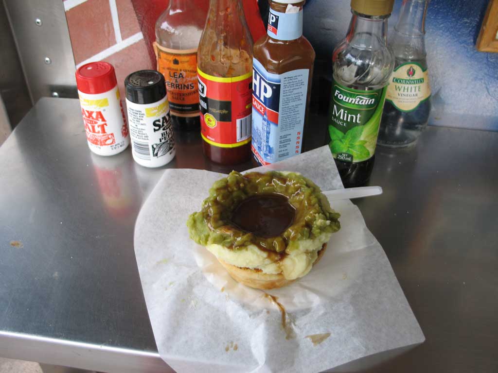 First stop, the (in)famous Harry's, which has been dishing out pies and such for about 60 years. I was hoping for a "floater", or a pie floating in a bowl of pea soup. Floater technology has evolved, so I settled for a "Tiger" , which has mashed potatoes, mashed peas, and gravy stacked on the pie (no bowl needed!). Click photo to see the Tiger.