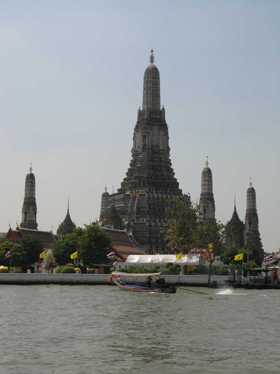 All around Bangkok, and everywhere else in Thailand, there are Wats, or Buddhist Temples. They tend to be beautifully decorated. Some, such as Wat Arun shown here, are hundreds of years old. An image of this Wat is found on reverse side of the Thai Coins. The King, of course, is on the front.