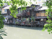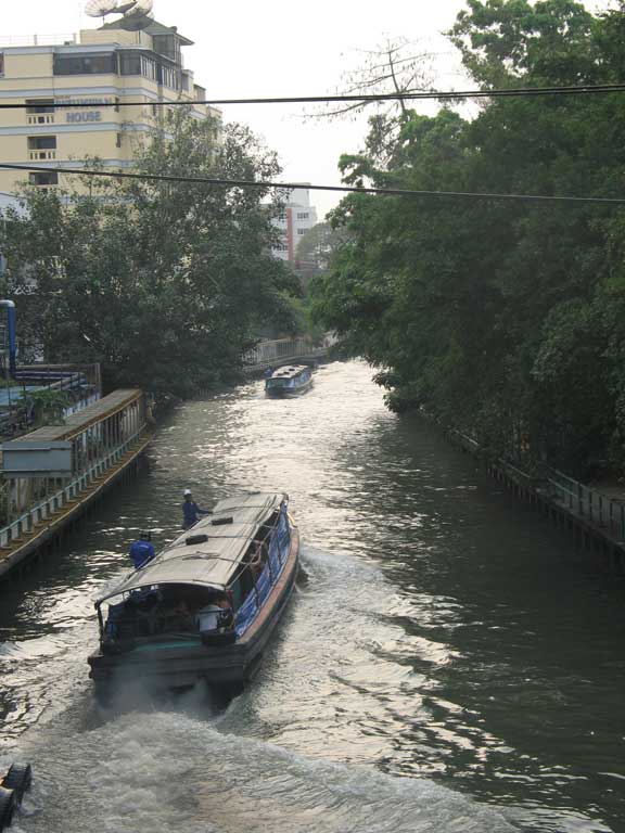 The canals, or khlongs, (those that have not been filled in to build roads) still provide an effective means of transport in some areas of the city. Note the taxi boats have canvas sides, which prevent the noxious water from splashing on the passengers.