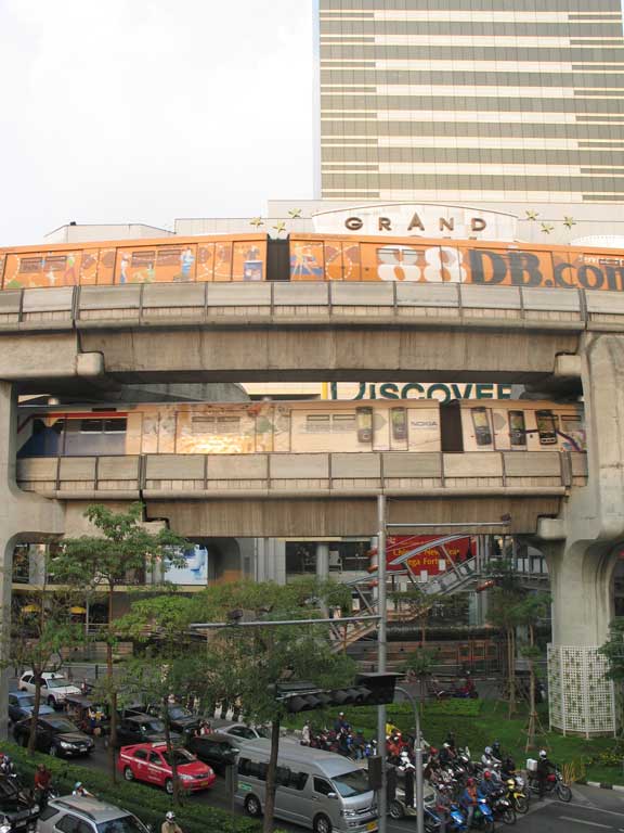 With so many people, transport is of course very important. We found the skytrain, shown here on two levels, was a great way to get around and get a good view of the city as well. It would actually be cheaper to take a taxi, but who wants to be down on the ground stuck in traffic?