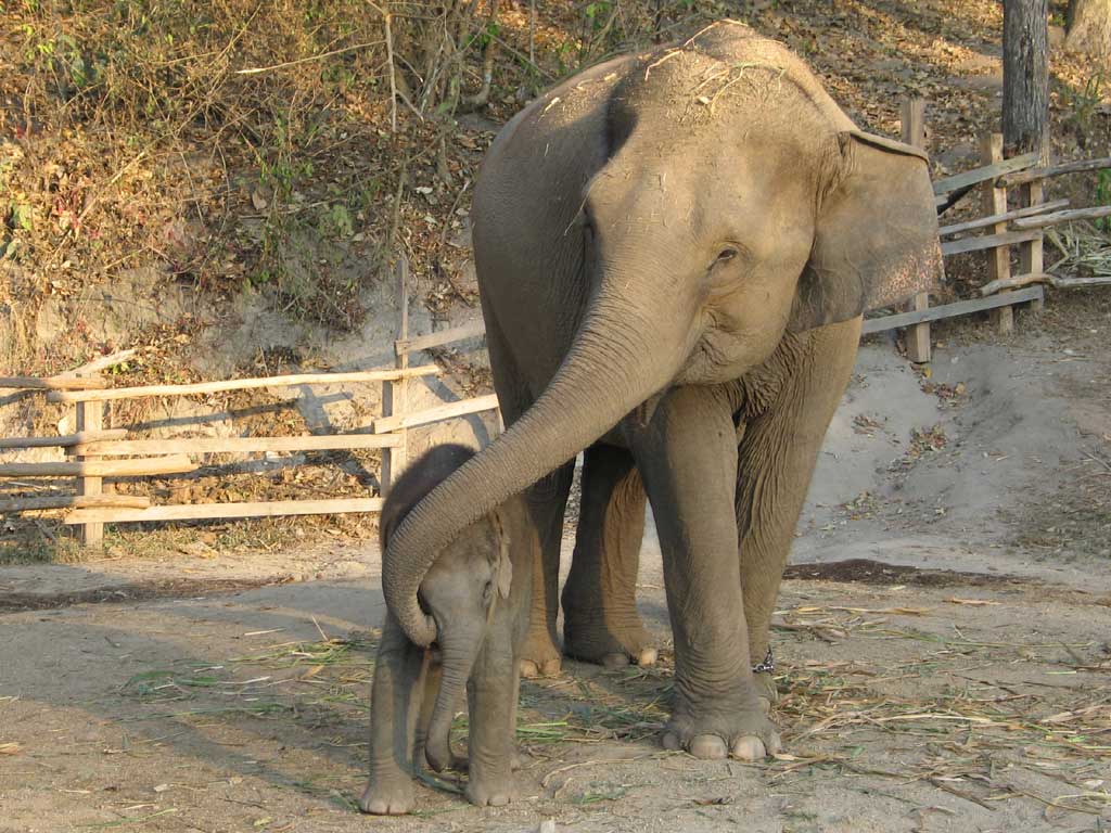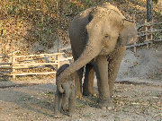 The facility has approximately 50 elephants. Many are retired from or rescued from logging camps. They are also trying to keep things going with a breeding program. Here's the youngest resident, Piyanut, who was about 2 and a half months old when we visited.