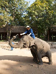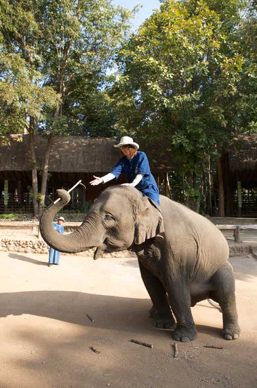 Tana's elephant, Wannalee, shows some good form in returning the ankus, or mahout tool, that Tana has carelessly dropped. Actually, dropping and returning the tool is part of the training. Mostly is was us being trained, as the elephants are very smart and knew exactly what to do.