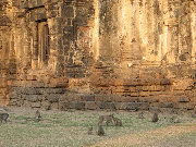 The monkeys roam freely through the area around town close to the ruins. All nearby buildings are appropriately fortified for protection, and all nearby shopkeepers are armed with bamboo sticks to keep the monkeys out of trouble.