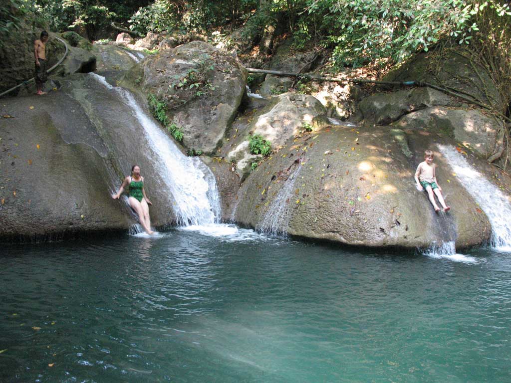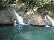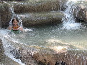 We took a trip to the Erawan National Park, where the main attraction is a series of waterfalls, very scenic and great for swimming. We got there early and had the place more or less to ourselves. Waterfall #4 (of 7) had great slides.