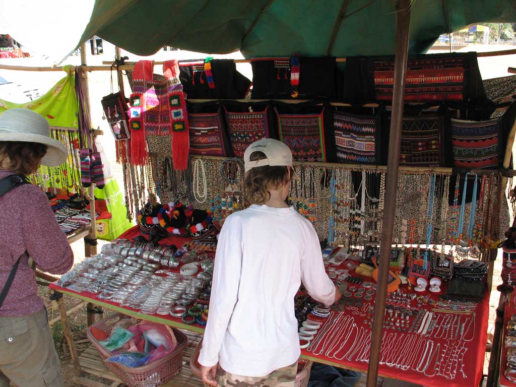 Tana and Zane check out the Hill Tribe crafts at the market in Mae Salong.
