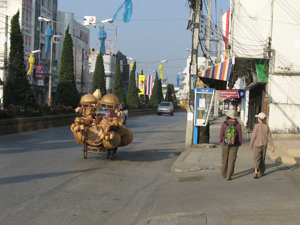 Basket seller making his way through Chang Rai early in the morning.