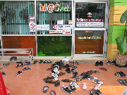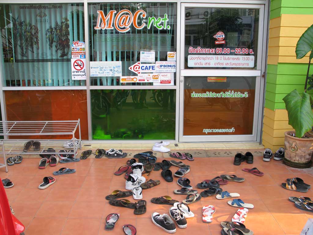 Not a good time to check e-mail at the local internet establishment - school is out and the place is packed with gamers. At least ONE of the kids put their shoes on the rack.
