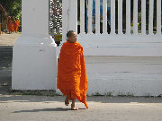 You do actually see monks walking around in their robes. We were having a refreshment in the quickie-mart across the street from the Wat when this young fellow came in for his fix of chips and soda.