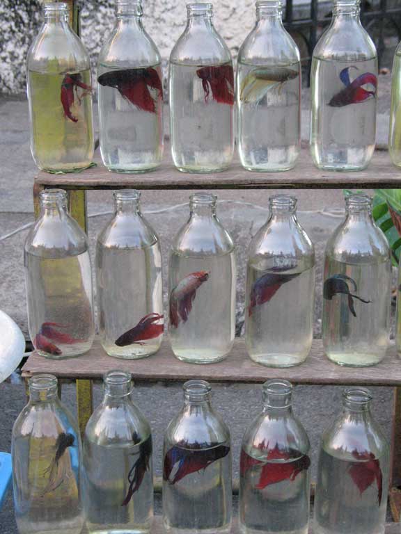 The infamous Siamese fighting fish, which we spotted only once, at the market in Chang Rai.